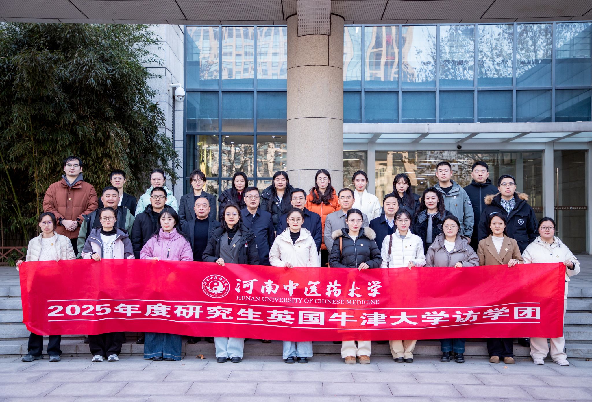 2025-12-26学校召开2025年度研究生赴牛津大学访学行前教育暨动员会校长王耀献作动员讲话会议现场合影留念本网讯(文/李敬平 图/吴晋一)为确保2025年度研究生英国牛津大学访学活动顺利开展,帮助学生做好访学准备,12月24日下午,学校召开行前教育暨动员会。校长王耀献,副校长林俊堂,校党委学工部、研工部、武装部,研究生院,国际合作处等相关职能部门负责人,访学带队教师及23名访学研究生参加会议。会议由副校长林俊堂主持。会议伊始,全体人员共同观看了牛津大学发来的欢迎视频。视频中,牛津大学相关负责人表达了对河南中医药大学师生的热烈欢迎。...